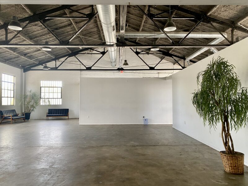Our Blank Canvas Warehouse is our original location. White wall simplicity makes it fresh and ready… Go as-is for artsy events or Splash your own lights, color, and cloth for a complete up do. You can do just about anything with this space.